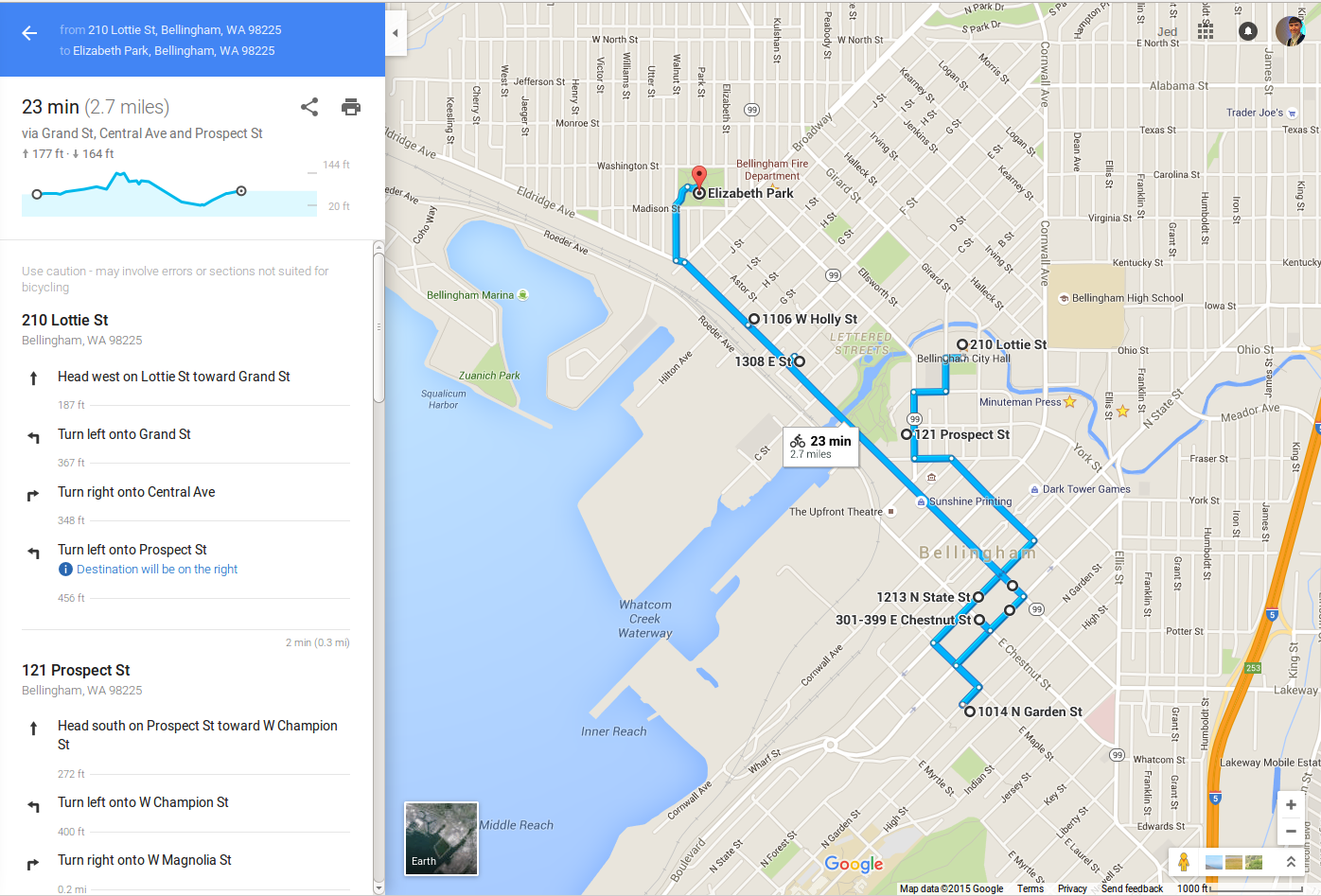 This route has some significant hills, but I have them included for some of the best bits of town. I think we’ll all walk our bikes at some point, and I would encourage us to break out the tea cups and pour a restorative measure of water to help our constitutions.